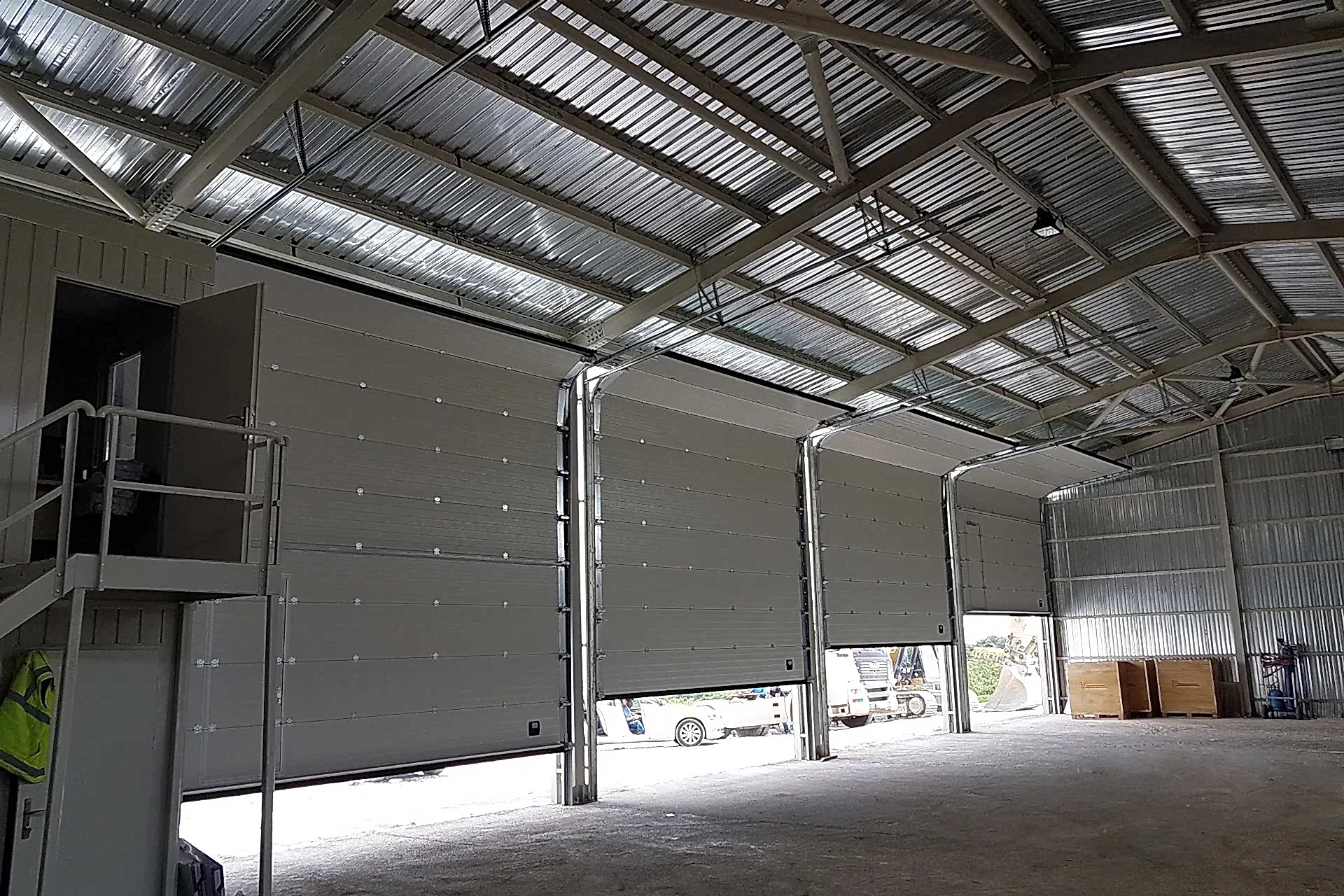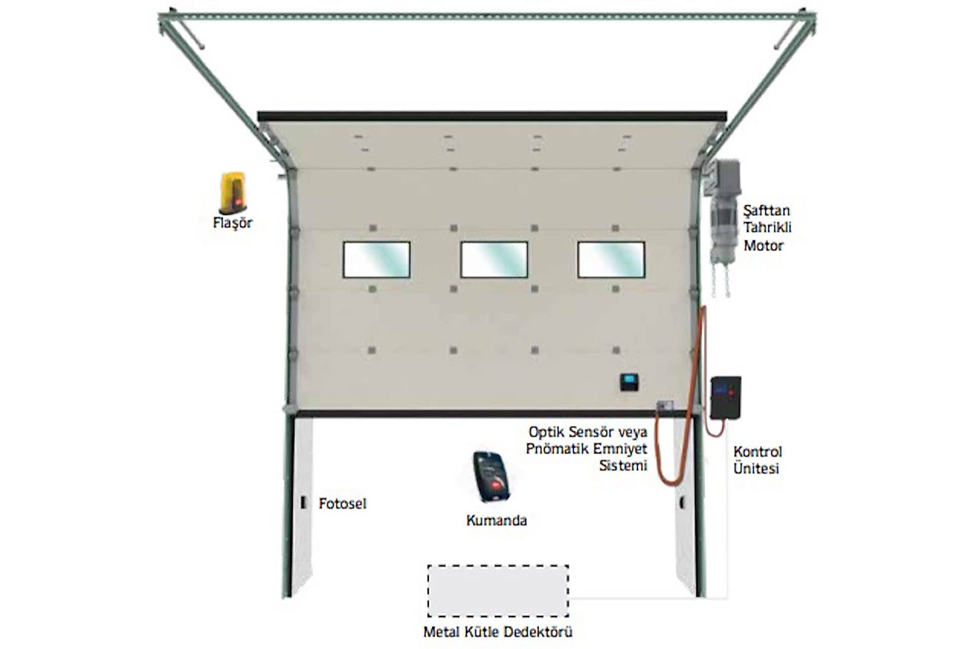 Eşsiz genişlikte seksiyonel kapı ürün yelpazesi Seksiyonel kapılar dikey olarak açılır ve bu sayede kapının önünde ve arkasında yer işgal etmez. Kapı panelleri yatay olarak tavan altına, dikey olarak açıklığın üzerine doğru veya çatı boyunca hareket edecek şekilde yerleştirilir. Çelik, çelik/alüminyum kombinasyonu veya alüminyumdan mamul seksiyonel kapılar, eşsiz genişlikteki ürün yelpazesiyle, mükemmel tasarımı ve sertifikasyonlu güvenliğiyle ön plana çıkmaktadır. Kompakt seksiyonel kapılar, her bir paneli lentonun hemen arkasında dikey şekilde istifler. Düşük sürme derinliği, ışık kubbeli hangarlarda, cam tavanlarda ve cam cephelerde özellikle avantajlıdır. Ticari binalarda endüstriyel kapılar önemli yer tutar.