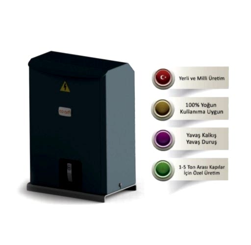 600 kg taşıma kapasitesi, 220 v ac, 17cm/sn çalışma hızı, max 7 metrelik kapılarda uygulanır